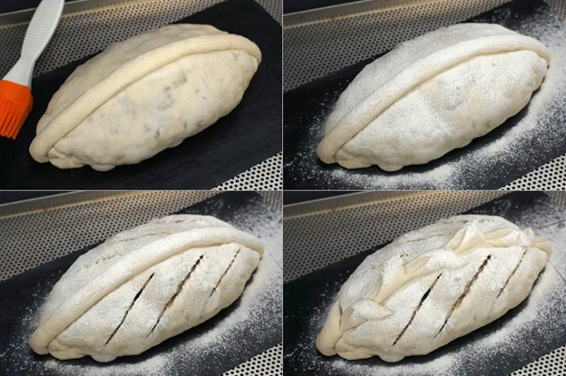 Готовое тесто обомните, чтобы выпустить лишний углекислый газ. Затем сформируйте буханку: можно скатать плотный овал или аккуратно свернуть рулетом и уложить швом вниз в смазанную форму для хлеба.